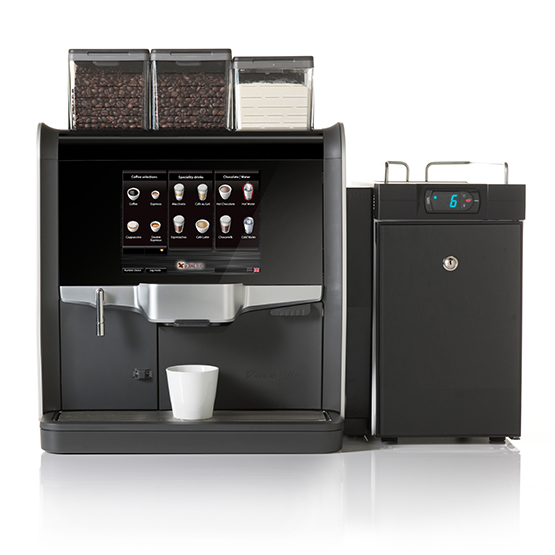 Velegnet op til 100 brugere. De Jong DUKE Nio er en prisvindende, brugervenlig og alsidig fuldautomatisk "bean-to-cup" kaffemaskine designet til travle kontormiljøer. Med flot design (presse-aluminium) og fleksibilitet til at brygge alt fra friskbrygget espresso med frisk eller pulveriseret mælk til kakao, via en intuitiv 10.4″ touchskærm, med fokus på høj kvalitet, nem betjening og vedligeholdelse