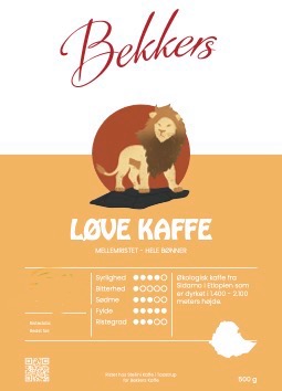 Løvekaffen er en Etiopisk specialty kaffe. Løven på forsiden er også en Etiopisk løve som har en lidt mørkere manke.